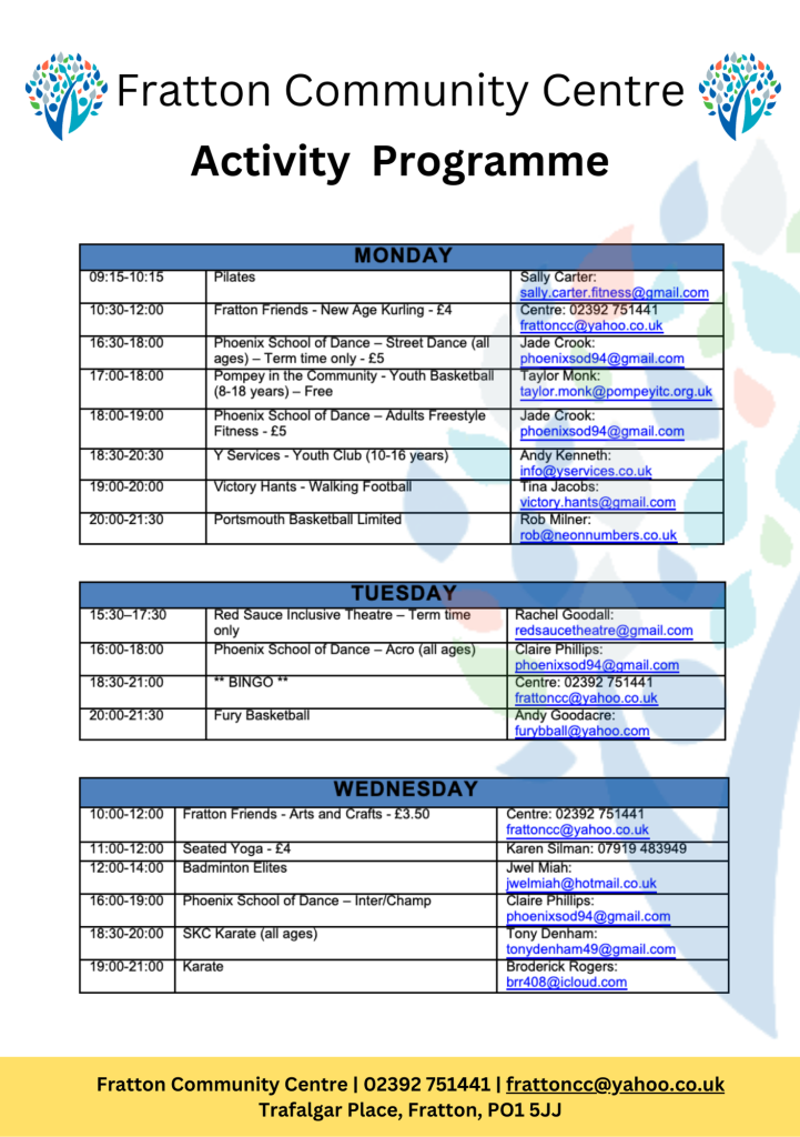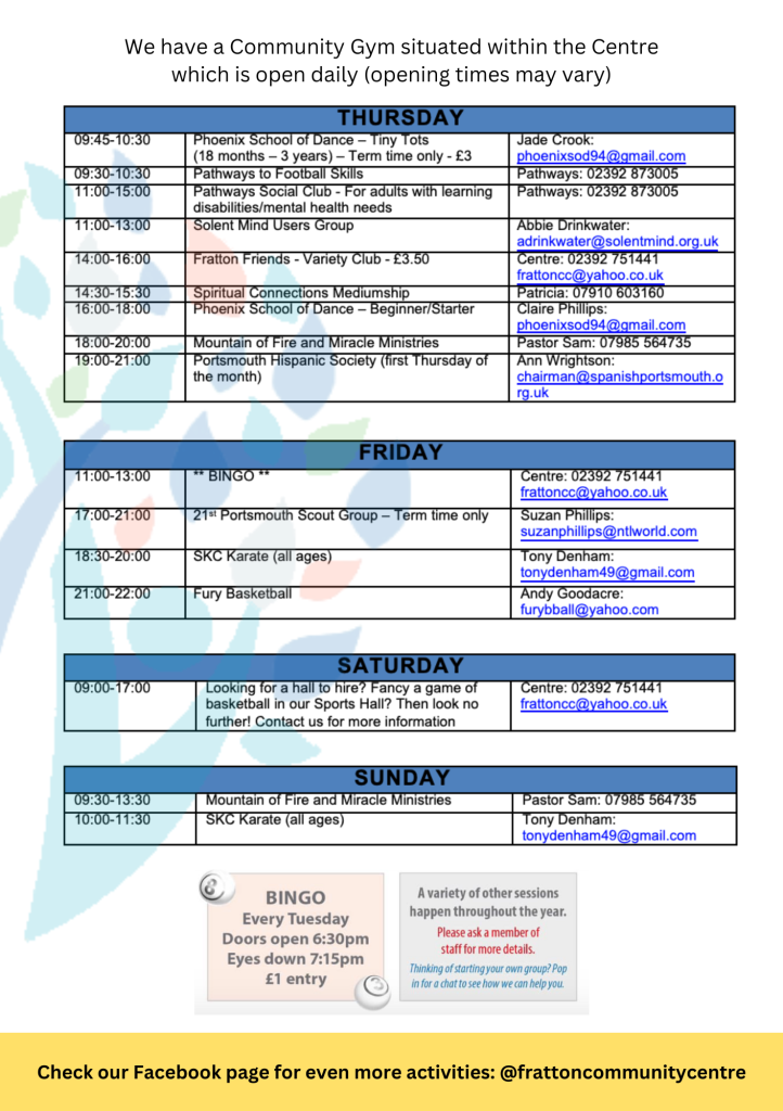 At Fratton Community Centre, we have a wide range of regular activities all year round.